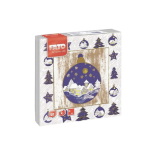 FATO Christmas napkins 33×33 cm bring a festive atmosphere to any table setting. Featuring an elegant winter design with a Christmas ornament and snowy village scenery, they are perfect for holiday celebrations, festive dinners, catering services, or home use. Made from high-quality, soft, and absorbent 2-ply material, these napkins combine practicality with a premium decorative appearance.