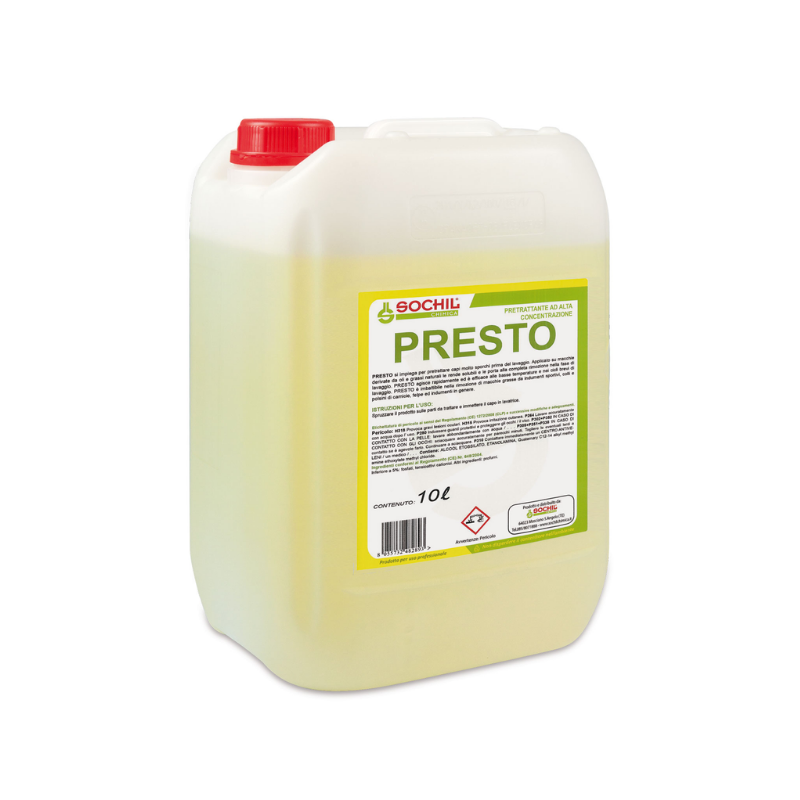 PRESTO je iznimno učinkovito sredstvo za uklanjanje masnih mrlja s tkanina, posebno razvijeno za predtretman jako zaprljanog rublja prije pranja. Djeluje brzo i učinkovito čak i pri niskim temperaturama te u kratkim ciklusima pranja.